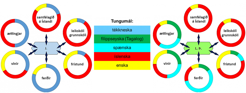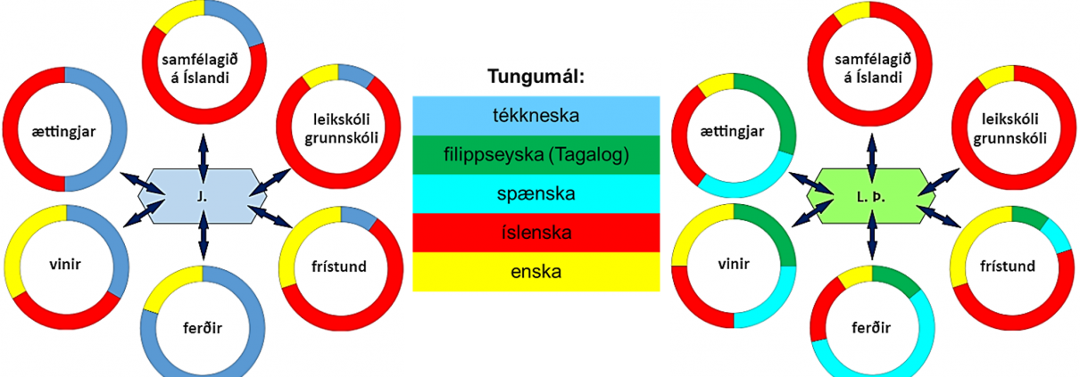 Þetta er langtímarannsókn um tvo fjöltyngda drengi og fjallar um viðhorf til og notkun tungumálana í umhverfi barnanna ásamt samantekt á frammistöðu þeirra í íslensku í 10 ár.
