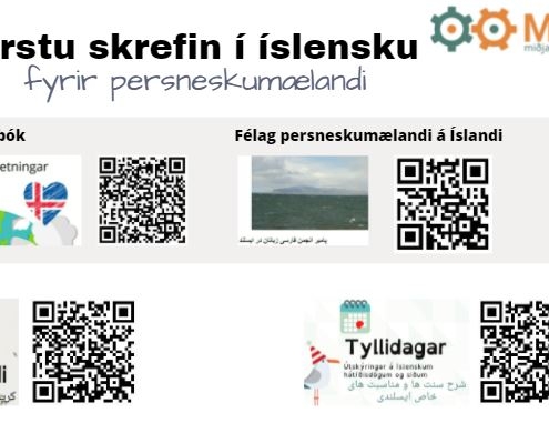 Stoðir með QR kóðum fyrir byrjendur í íslensku stafrófi