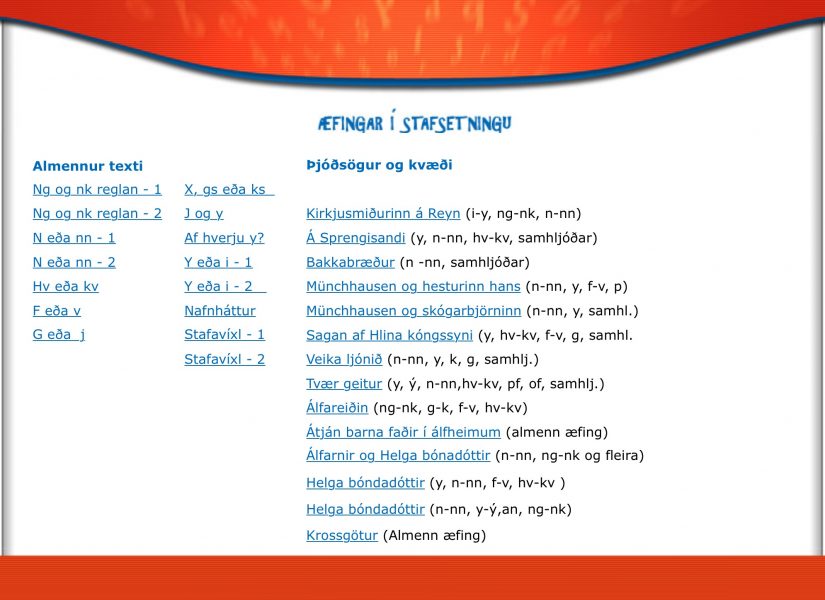 MMS hefur búið til vef sem er ætlaður börnum á mið- og unglingastigi grunnskóla sem eru að æfa sig í stafsetningu. Á vef þessum má finna æfingar úr gömlum stafsetningarbókum og íslenskum þjóðsögum, kvæðum og ævintýrum.
