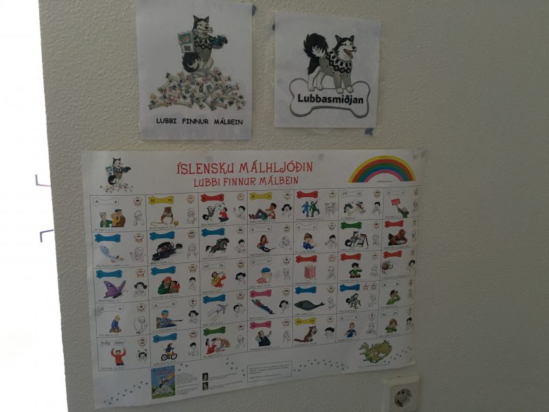 Í leikskólanum Heiðarborg og reyndar mörgum leikskólum Reykjavíkurborgar má sjá að unnið er með námsefnið Lubbi finnur málbein.