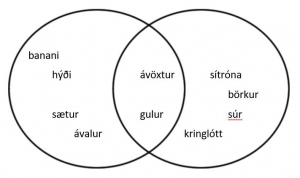 Stýrðar umræður um hvað er eins og hvað er ekki eins og venslakort teiknað í sameiningu. Mjög mikilvægt er að skrifa niður öll orð sem koma fram á venslakortið.