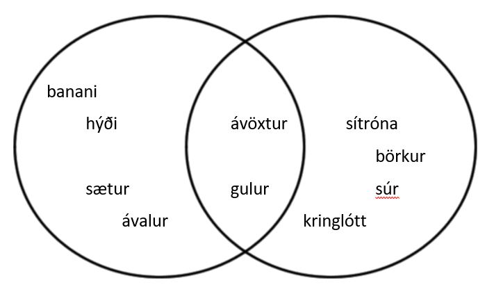 Aðferð: Tvær myndir sýndar. T.d. banani og sítróna.